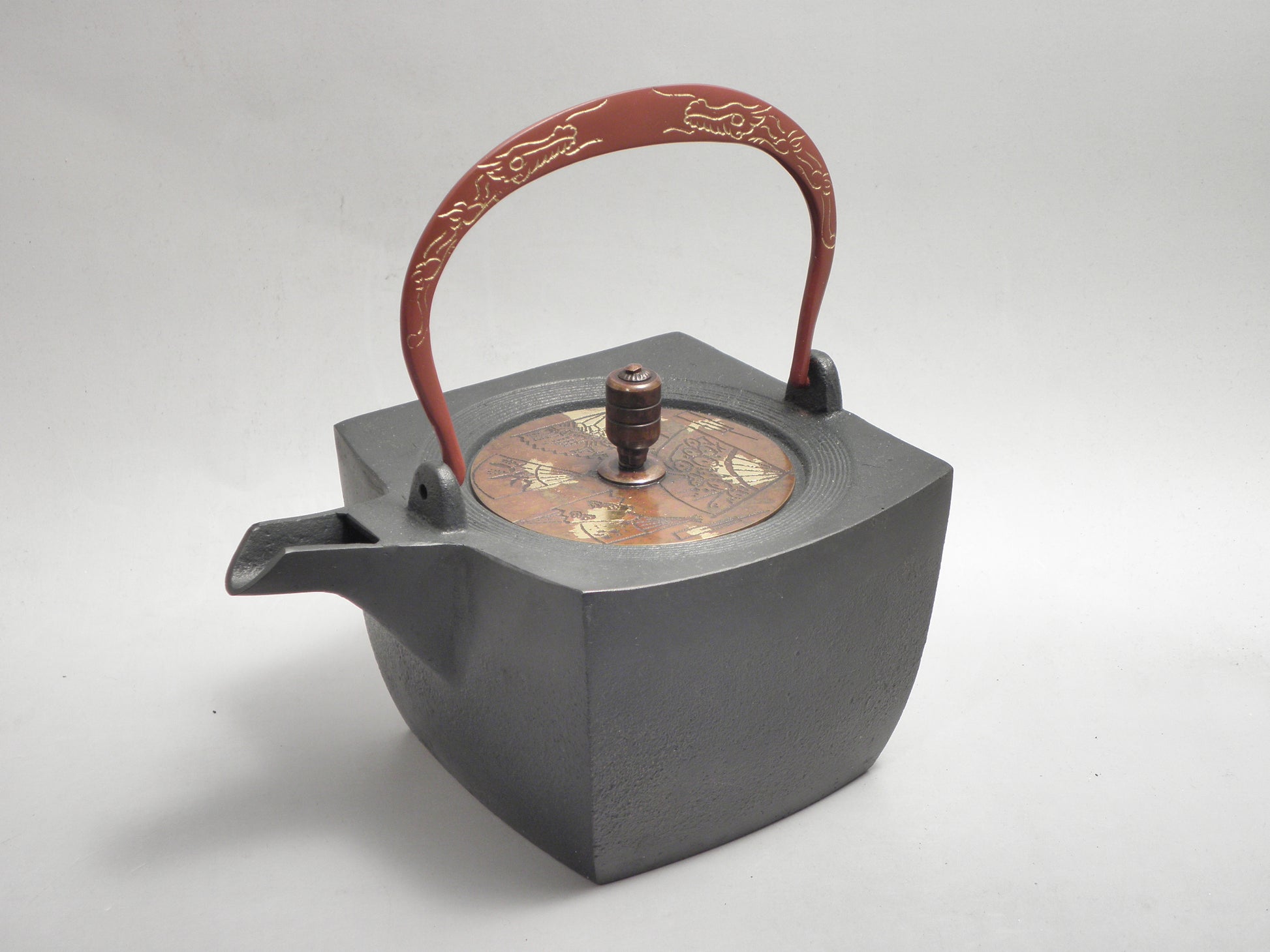 小鉄瓶 四方 D-1扇面 弦 黒龍(赤龍)